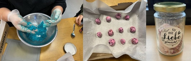 Aber nicht nur darin unterscheidet sich das PUSCH- Konzept. Wir arbeiten zudem sehr individuell und projektorientiert. So haben wir im ersten Halbjahr bereits einige Projektideen verwirklichen können. Darunter waren ein erlebnispädagogischer Waldtag mit Frau Fuchs und Herrn Kuhne, bei dem unsere Jungs ganz neue Lösungsmöglichkeiten entwickelt haben, ein Nachhaltigkeitsprojekt zur Herstellung eigener Badesalze, -Kugeln und Lippenbalsam mit Frau Arlsan-Birinci sowie der Besuch der Ausbildungsmesse der Brühlwiesenschule am letzten Februarwochenende.